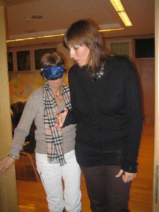 Le esperienze pratiche con benda o con occhiali che simulano l’ipovisione, tecniche di accompagnamento ed altre attività sono state proposte dalle istruttrici per l’orientamento, Sonia Bemolli e Viola Nucci insieme alle ortottiste che lavorano presso il Centro, Stefanie Anteli, Maria Rita Knab, e la pedagogista Dagmar Pichler.