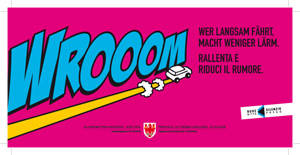 Con questo motto il Dipartimento all’ambiente della Provincia, in collaborazione con l'ACI e la Ripartizione Mobilità, a partire da domani, 28 aprile 2010, 15. Giornata internazionale contro il rumore, avvia una campagna di sensibilizzazione verso gli automobilisti per la riduzione del rumore causato dal traffico veicolare soprattutto nelle zone abitate.