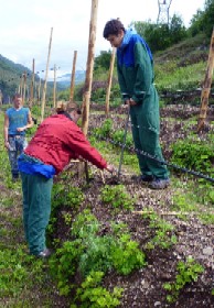 Gli allievi della classe terza hanno messo a dimora un centinaio di piantine lungo due filari lasciati a disposizione della scuola nel vigneto di proprietà del Comune di Bolzano accanto a Castel Roncolo.
