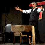 La compagnia Alberto De Bastiani con pochi oggetti di legno, i pupazzi del gatto e della volpe, i burattini del teatro di Mangiafuoco, le canzoni del grillo parlante e del paese dei balocchi, un solo attore racconta e darà voce a "La storia di Pinocchio".