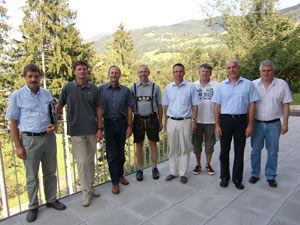 da sx a dx:Valentin Mair e Andreas Kasal (coordinatori di progetto, Prov. BZ), Leonhard Treffler e Josef Wölfle (Baviera), Markus Hobi (San Gallo), Georg Juritsch (Salisburgo), Rudolf Bucher (Canton Grigioni) e Otto Astner (Tirolo).
