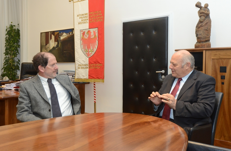 Prima visita a Bolzano di Alberto Pacher nella nuova veste di Presidente della Giunta provinciale di Trento: nell'incontro a Palazzo Widmann Luis Durnwalder e il collega trentino hanno fatto il punto della cooperazione tra Alto Adige e Trentino e approfondito alcune questioni di attualità e di comune interesse: "Anche dopo il cambio al vertice politico-amministrativo del Trentino vogliamo naturalmente confermare la buona collaborazione tra le due Province autonome - ha riferito Durnwalder al termine del colloquio - con il lavoro nella Regione e nella cornice transfrontaliera dell'Euregio." Tra i temi concreti approfonditi dai due Presidenti anche la concessione per l'A22 e il futuro di Mediocredito.