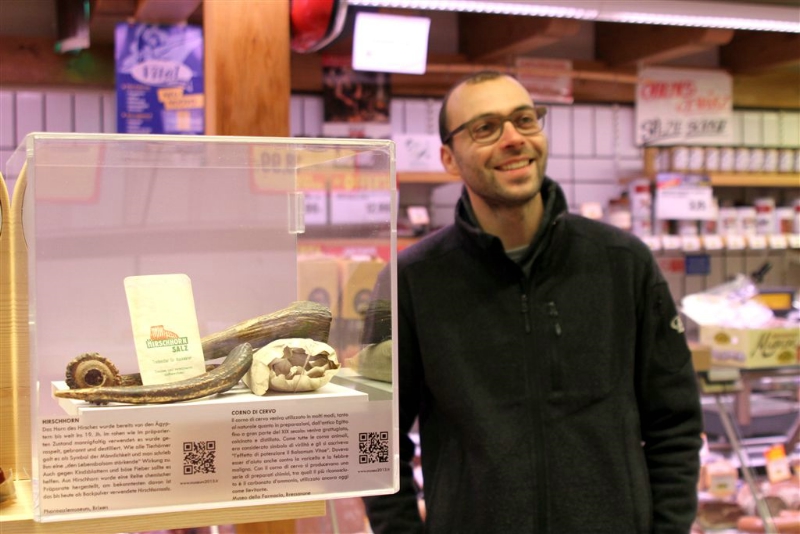 I sei oggetti che popoleranno a turno gli scaffali dei dodici supermercati rivelano quanto vari nei contenuti e rappresentativi del territorio siano i musei dell'Alto Adige. Nei cubi di plexiglas gli avventori troveranno delle corna di cervo "medicinali" messe a disposizione dal Museo della Farmacia di Bressanone, un geoide (pietra rotondeggiante con, all'interno, cristalli di quarzo) proveniente dal Museo mineralogico di Tiso, una bambola e un cavallino giocattolo in legno, esempi di artigianato gardenese del XIX secolo dalla collezione del Museum Ghërdeina.
