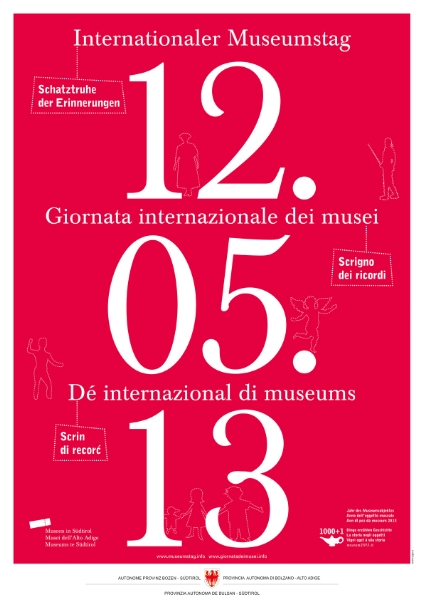 Pezzo forte della Giornata internazionale dei musei 2013 in provincia di Bolzano sarà l'iniziativa "Scrigno dei ricordi", che coinvolge undici musei. Bambini e adulti sono invitati a portare in uno di essi il proprio oggetto del cuore: lì, esso verrà fotografato e catalogato, entrando a far parte di un museo virtuale consultabile su internet.