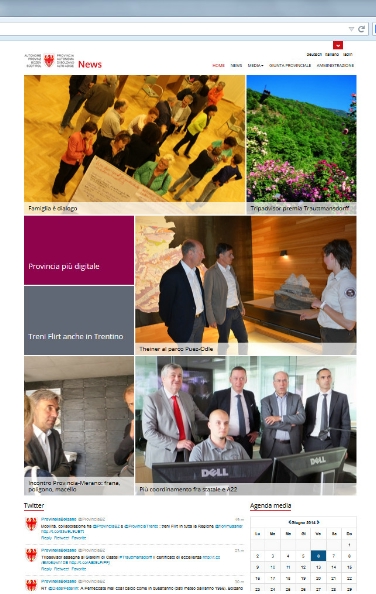 L'Ufficio stampa, in collaborazione con Informatica Alto Adige, ha aggiornato la propria presenza sul web accorpando su un'unica pagina tutte le informazioni e i contenuti mediatici. La novità principale è rappresentata dal layout, con le ultime notizie suddivise in tanti piccoli mattoni a formare una sorta di "muro" delle news. A proposito di muro, nella parte centrale del portale vi è nuovamente spazio per il Twitter-Wall che offre una panoramica su tutti i cinguettii che riguardano la Giunta e l'amministrazione provinciale.