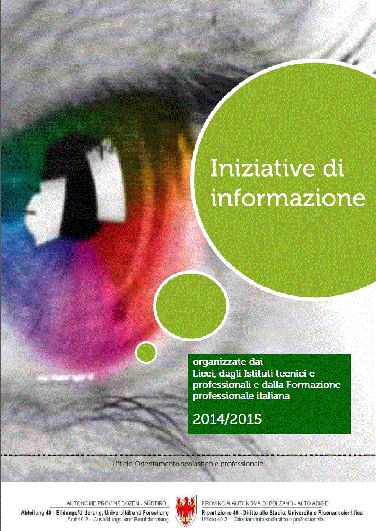 Un opuscolo, disponibile anche online, raccoglie tutte le Giornate delle porte aperte e i vari progetti informativi organizzati dai Licei, dagli Istituti tecnici e professionali e dalla Formazione professionale italiana per i ragazzi di terza media che entro il prossimo 31 marzo devono scegliere l'istituto superiore.