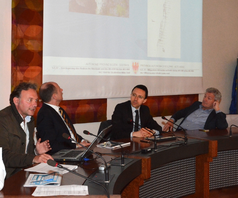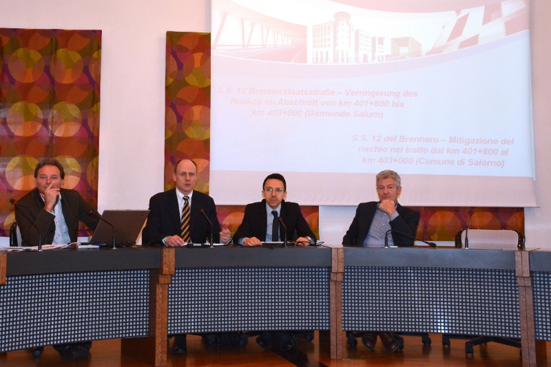 Verso fine aprile 2015 con tutta probabilità potranno essere consegnati i lavori per gli interventi volti alla mitigazione del rischio caduta massi sulla statale del Brennero a Salorno che prevedono la deviazione del tracciato. La conclusione è indicata per ottobre 2016. Lo ha annunciato l'assessore Tommasini presentando gli interventi oggi 26.03 in un incontro pubblico a Salorno. **SEGUONO FOTO