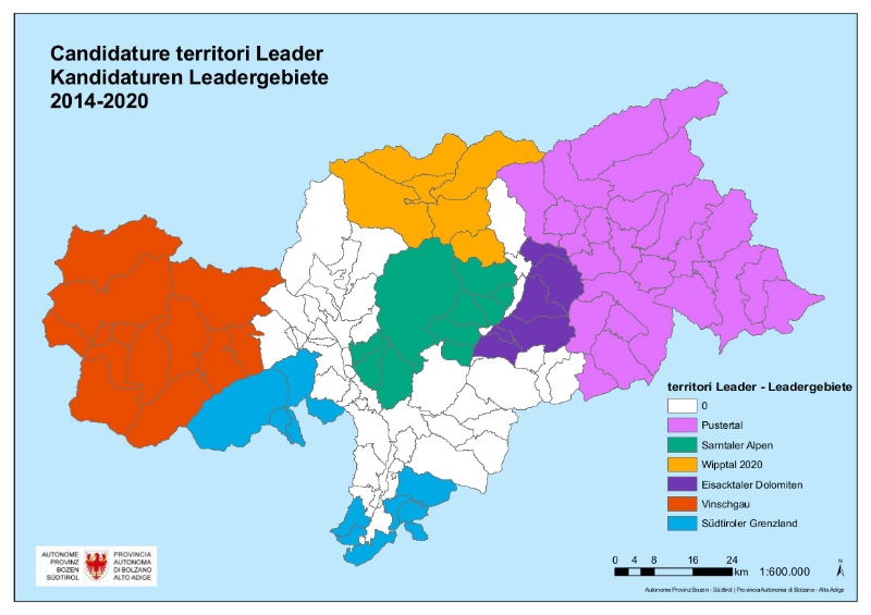 I sei territori Leader che avranno accesso alle procedure di sostegno previste dalla UE sono i seguenti: Val Venosta, zone di confine, Alpi di Sarentino, Dolomiti Val d'Isarco, Alta Val d'Isarco 2020 e Val Pusteria. "Si tratta di un'iniziativa estremamente importante per una regione come l'Alto Adige - ha spiegato Arnold Schuler - e che può contare su finanziamenti europei maggiori rispetto al passato: in totale, infatti, verranno incentivati progetti nell'ambito del programma di sviluppo rurale 2014-2020 per un totale di circa 20 milioni di euro".