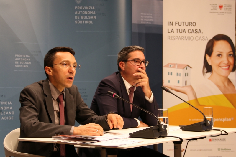 Per il Risparmio casa la Provincia mette a disposizione una dotazione iniziale di 20 milioni di euro per la concessione dei mutui e contribuisce a stabilizzarli al tasso fisso dell'1,5% per una durata massima di 20 anni. "La pensione complementare diventa quindi attrattiva anche per i giovani, perchè significa risparmiare per avere una casa propria. Con questo modello vogliamo dare agli altoatesini la possibilità di finanziare più agevolmente l'alloggio di proprietà. L'ente pubblico premia chi risparmia e favorisce una nuova cultura della responsabilità personale", ha detto il presidente Kompatscher. I numeri confermano che i primi mesi sono stati un successo: "Questo strumento innovativo è stato accolto molto bene dagli altoatesini. Malgrado l'avvio in estate durante il periodo delle vacanze e senza azioni promozionali mirate, Pensplan ha emesso al 7 ottobre già 171 attestazioni delle posizioni previdenziali complementari riferite a Laborfonds, fondo pensione aperto Raiffeisen, Plurifonds, Profi e Arca", ha aggiunto Kompatscher. La somma mediamente attestata nel singolo fondo complementare si aggira sui 43mila euro. Sempre alla data del 7 ottobre sono stati erogati mutui per 3,64 milioni di euro, l'importo complessivo delle attestazioni emesse ammonta a 7,5 milioni, che corrispondono a mutui potenziali di 15 milioni per il Risparmio casa. Dall'emissione dell'attestazione alla concessione del mutuo trascorre circa un mese, "quindi tempi rapidi nella collaborazione pubblico-privato", ha sottolineato Kompatscher.