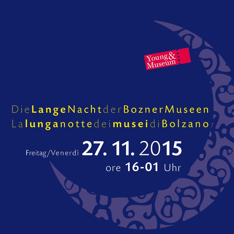 Ammirare i lavori artistici con i quali ragazze e ragazzi hanno riletto il Museo Archeologico, visitare la mostra su Gesù Bambino al Museo Civico, scoprire i segreti della cucina medievale a Castel Roncolo, partecipare a una suggestiva visita guidata notturna al Monumento alla Vittoria, che illustri le storie ad esso legate; o vivere un "dietro le quinte" a Museion, infilarsi nelle cantine medievali di Palazzo Mercantile, sperimentare in prima persona il percorso espositivo del Museo di Scienze Naturali dell'Alto Adige e rievocare al Museo della Scuola, tra calamai e abbecedari, le avventure di scolare e scolari di ieri e di oggi: tutto questo, e molto di più, è la Lunga notte dei musei di Bolzano, la cui 14a edizione si terrà venerdì 27 novembre 2015. "Una manifestazione molto amata," sottolinea l'assessore provinciale ai Musei Florian Mussner, "che da anni rappresenta uno dei punti forti culturali del capoluogo e dell'anno museale".