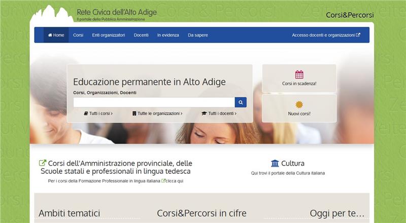 Il nuovo portale dell'educazione permanente in Provincia di Bolzano si trova a questo indirizzo: corsiepercorsi.retecivica.bz.it.