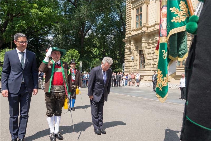 Per le ultime visite fuori dai confini austriaci dei suoi 12 anni alla Presidenza della Repubblica, Heinz Fischer ha scelto la Slovenia (dove ha presenziato alla cerimonia dei 25 anni dell’indipendenza) e l’Alto Adige, dove è giunto oggi intorno alle 11 proveniente da Lubiana. Accolto dal presidente della Provincia Arno Kompatscher e dalla tradizionale cerimonia di benvenuto (“landesüblicher Empfang”) degli Schützen in piazza Magnago, il Capo dello Stato austriaco si è quindi trasferito a Palazzo Widmann per un colloquio di circa un’ora con Kompatscher. Diversi i temi di attualità affrontati, dalla situazione economica in Alto Adige allo sviluppo dei rapporti tra Bolzano, Vienna e Roma, dalla questione dei migranti e del Brennero alla Brexit.