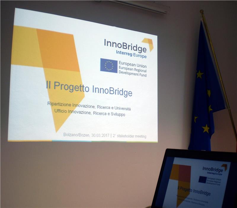 Attraverso la Ripartizione Innovazione, ricerca e università, la Provincia di Bolzano partecipa al progetto InnoBridge, partito nel 2016 nell'ambito del programma Interreg Europe 2014-2020, assieme a partner da Austria, Bulgaria, Finlandia, Portogallo, Polonia, Spagna e Ungheria. Il progetto punta a potenziare la competitività della piccole e medie imprese attraverso la riduzione del divario innovativo e il miglioramento degli strumenti per trasformare la conoscenza di ricerca e sviluppo in risultati di mercato. Il progetto si articola in due fasi: la prima, triennale, è caratterizzata dall'apprendimento e dallo scambio di esperienze attraverso seminari e visite di studio nelle regioni partner e dal coinvolgimento in ciascuna regione di un gruppo di stakeholder locali.