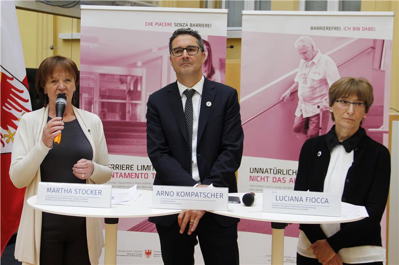Il presidente della Provincia, Arno Kompatscher, l’assessora alla sanità ed alle politiche sociali, Martha Stocker, e la direttrice dell’Ufficio persone con disabilità, Luciana Fiocca, hanno presetato questa mattina l’iniziativa “Tappeto senza barriere” che fa parte della campagna di sensibilizzazione, avviata nel 2015, contro la barriere architettoniche.