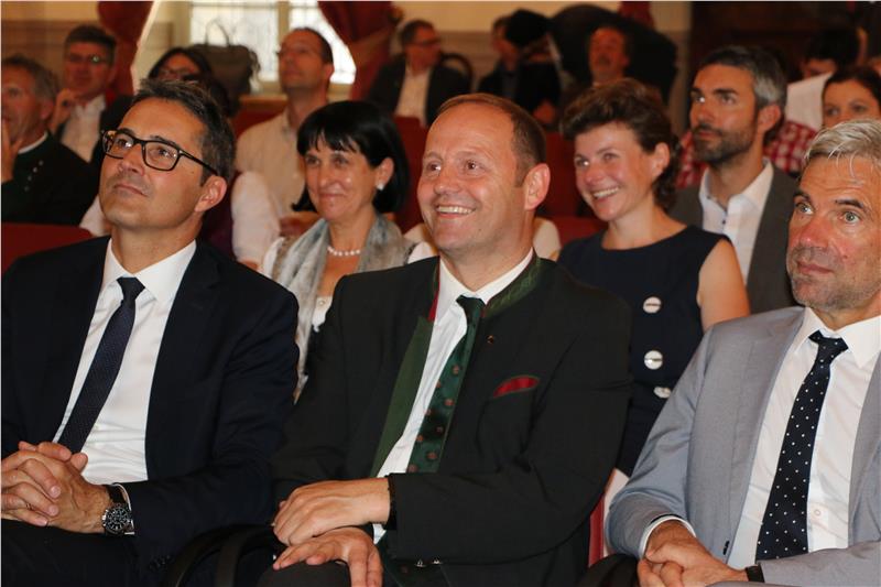 E' stato assegnato alle 65 contadine del progetto "Dalle nostre mani" il premio del concorso Euregio "Il turismo incontra l’agricoltura" promosso con l’obiettivo di rendere visibile la cooperazione tra i due comparti. Premiati anche il Centro di formazione professionale di Tesero e una malga in Tirolo. Alla cerimonia di consegna che si è tenuta stamani (26 maggio) a Palazzo Mercantile erano presenti il presidente Arno Kompatscher, l’assessore Arnold Schuler, il vicepresidente e assessore all’agricoltura, Josef Geisler, e dal dirigente della Provincia di Trento Giuseppe Bax in rappresentanza dell’assessore Michele Dallapiccola.