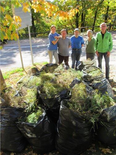 Azione a San Genesio per estirpare una pianta infestante