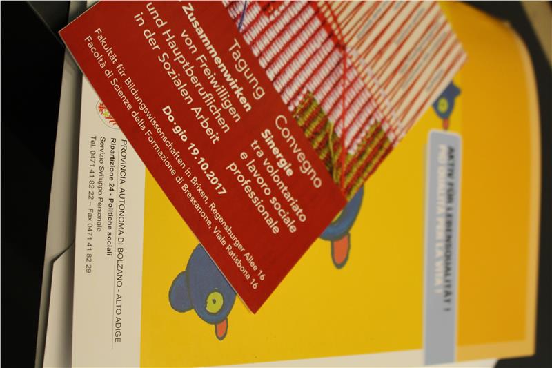 Un concetto, quest'ultimo, ribadito anche da Georg Leimstädtner, direttore della Federazione per il sociale e la sanità, mentre Brigitte Waldner, direttrice dell'Ufficio anziani e distretti sociali ha paragonato il lavoro nel settore sociale ad un pezzo di stoffa, "con ogni filo che è diverso dall'altro, ma che è assolutamente necessario". Le tematiche del convegno, intitolato "Sinergie tra volontariato e lavoro sociale professionale", sono state poi approfondite nel corso di 5 workshop, mentre Paola Tasser, Daniela Erhard e Nicole Schwarz hanno illustrato una serie di esempi positivi: dalla casa di riposo di San Martino in Badia ad un progetto di assistenza all'infanzia in Val Venosta. Il convegno è stato organizzato dalla Ripartizione provinciale politiche sociali in collaborazione con la Libera Università di Bolzano, la Federazione per il sociale e la sanità e le scuole provinciali per le professioni sociali.