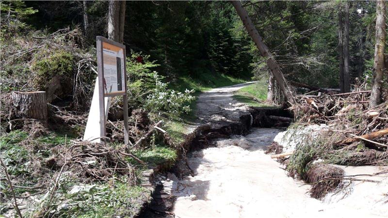 In seguito ai danni intervenuti per il maltempo nei mesi estivi la scorsa estate, sono previsti lavori urgenti straordinari in vari parchi naturali e in zone di tutela. Qui danni nel Paro Fanes-Senes-Braies (Foto: USP/Ufficio parchi naturali)