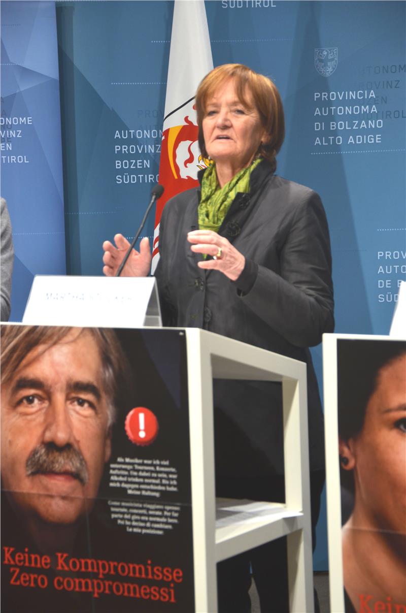"Zero compromessi – 4 storie vere", è questo lo slogan che caratterizza la nuova edizione della campagna contro l’alcol organizzata dal Forum prevenzione in collaborazione con la Ripartizione salute della Provincia. L’articolazione della campagna, che mira a stimolare la riflessione e la sensibilizzazione dell’opinione pubblica su questa importante problematica, è stata illustrata questa mattina (22 novembre) dall’assessora provinciale alla salute, Martha Stocker, dal direttore del Forum Prevenzione, Peter Koler, e dal regista Andreas Pichler. "Negli ultimi mesi numerosi altoatesini hanno preso posizione personalmente a favore della campagna di prevenzione contro l’alcol - ha spiegato la Stocker - e ciò per noi rappresenta una conferma che siamo sulla strada giusta. È ancora più convincente il fatto che alcuni siano anche disposti a raccontare le loro storie personali in merito a questa problematica, e a tutti loro va il mio più sentito ringraziamento. In base ai recenti dati Istat si registrano dei risultati positivi, con un calo del consumo di alcol tra i più giovani, e ciò ci incoraggia a proseguire in questa direzione caratterizzata da un mix di divieti e di prevenzione”.