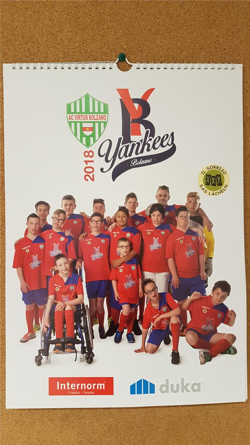 "E’ un progetto in cui crediamo molto – hanno detto Robert Oberrauch e Claudio Corrarati, presidente e vicepresidente della Virtus Bolzano – che seguiamo con attenzione e grande emozione. Lo sport deve unire la città, lo sport ha un grande valore anche quando non è finalizzato al raggiungimento dei risultati". Simone Pantano, uno dei genitori degli Yankees, ha ringraziato tutti coloro che hanno partecipato al progetto e che danno il loro sostegno all’associazione "Il sorriso", spiegando, infine, che i proventi (ad offerta libera) derivanti dalla distribuzione del calendario saranno utilizzati dagli Yankees per la loro attività e per effettuare un "camp" di calcio in una località marittima. Il calendario sarà acquistabile ad un banchetto allestito alle Professionali e il 7 e l’8 dicembre presso il negozio Sportler in via Portici a Bolzano o durante il torneo Dolomiti che si svolge nel weekend al Campo Righi sul Talvera a Bolzano. Ai seguenti link è possibile scaricare video in alta risoluzione.