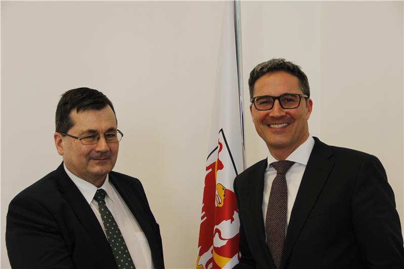 Il nuovo direttore dell'Ufficio per l'Alto Adige presso il Ministero degli esteri austriaco, Thomas Wunderbaldinger, ricevuto dal presidente Kompatscher.