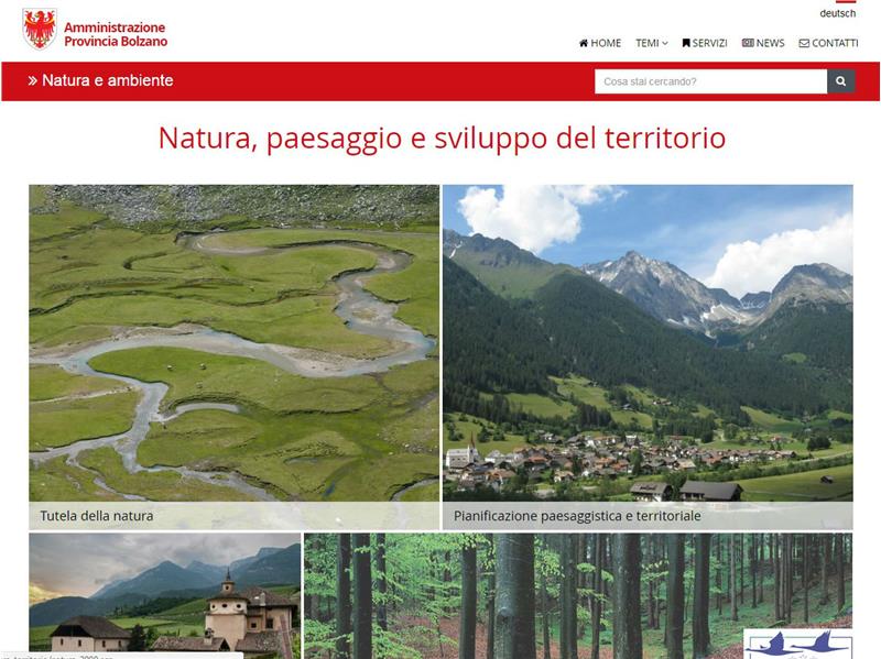 www.provincia.bz.it/natura-ambiente/natura-territorio: questo l'indirizzo di un nuovo portale web della Provincia che contiene tutte le informazioni su tre tematiche di grande importanza come la natura, il paesaggio e lo sviluppo del territorio. Grazie ad un nuovo layout grafico e ad un potente motore di ricerca interno, i contenuti saranno accessibili in maniera molto più chiara e semplice, anche tramite l'aiuto delle immagini di un patrimonio fotografico estremamente ampio. Come tutti i nuovi portali web dell'amministrazione provinciale, anche questo può contare su un design responsive che adegua automaticamente la pagina allo strumento con il quale si sta navigando: dal pc allo smartphone, passando per il tablet o il lettore eBook. Il portale dedicato a natura, paesaggio e sviluppo del territorio è diviso in sezioni che presentano singoli argomenti come Natura 2000, i contributi, la pianificazione paesaggistica e territoriale, le procedure e le commissioni su natura e paesaggio e altro ancora.