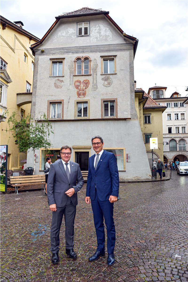 La Casa della Pesa di piazza del Grano è uno degli edifici più antichi e importanti della città: situato alle spalle dei Portici di Bolzano, la struttura risalte al 13esimo secolo, e dal 1433 al 1780 ha ospitato la pesa pubblica. Acquistato negli anni scorsi dalla Fondazione Cassa di Risparmio per una cifra attorno ai 4,5 milioni di euro, l'edificio necessità di urgenti interventi di risanamento e manutenzione che saranno avviati a breve, in modo tale da trasformare la Casa della Pesa in un vero e proprio polo culturale in grado di ospitare numerose associazioni che operano sul territorio. "La Casa della Pesa si trova in una delle piazze storiche di Bolzano - ha commentato Kompatscher - sin dal Medioevo è uno dei principali centri legati al commercio, e si trova proprio nel cuore dell'Euregio. Credo che sia la sede più adatta ad ospitare gli uffici del GECT".
