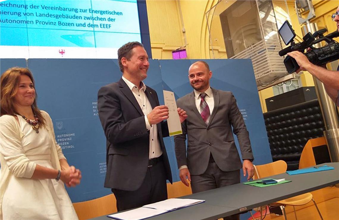 Una public-private partnership (PPP) in questo senso è stata sottoscritta oggi (13 giugno) a Bolzano, dall'assessore Bessone, dall'energy manager della Provincia Daniel Bedin e dalla rappresentante eeef, Lada Strelnikova, assieme al segretario generale della Provincia, Eros Magnago, Wolfram Sparber, direttore dell'Istituto per le energie rinnovabili di Eurac research e Alexander Gallmetzer, presidente di PensPlan Invest SGR. "Contiamo di pubblicare entro il 2020 il primo bando d'investimento per il primo contingente di 27 edifici provinciali, per poi procedere al loro risanamento energetico", ha annunciato Bessone, il quale ha aggiunto che "si tratta di un’operazione win-win. Avremo gli immobili ristrutturati praticamente a costo zero - ha spiegato - consumeremo meno energia riducendo le emissioni di CO2 e ridurremo le spese. Mi auguro che il grosso dei lavori venga assegnato a professionisti e anche a piccole e medie imprese locali".