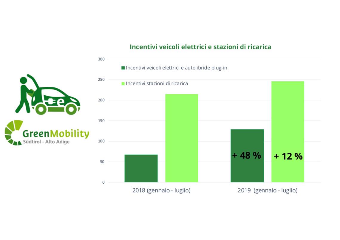 La Ripartizione mobilità ha erogato in totale 467.451 euro di contributi per incentivare la mobilità elettrica rispetto ai 344.880 del 2018, mentre le richieste di incentivazione da parte delle aziende sono passate dalle 40 del 2018 alle 84 del 2019, ovvero più del doppio. In aumento anche per le richieste di contributo presentate da privati cittadini. Tra gennaio e luglio 2018 erano stati 27 gli incentivi per l'acquisto di auto elettriche e di veicoli ibridi con sistema plug in erogati, mentre nello stesso arco temporale nel 2019 sono diventati 45. In totale pertanto nel 2019 sono state presentate 129 richieste, 62 in più (+48%) rispetto al 2018.