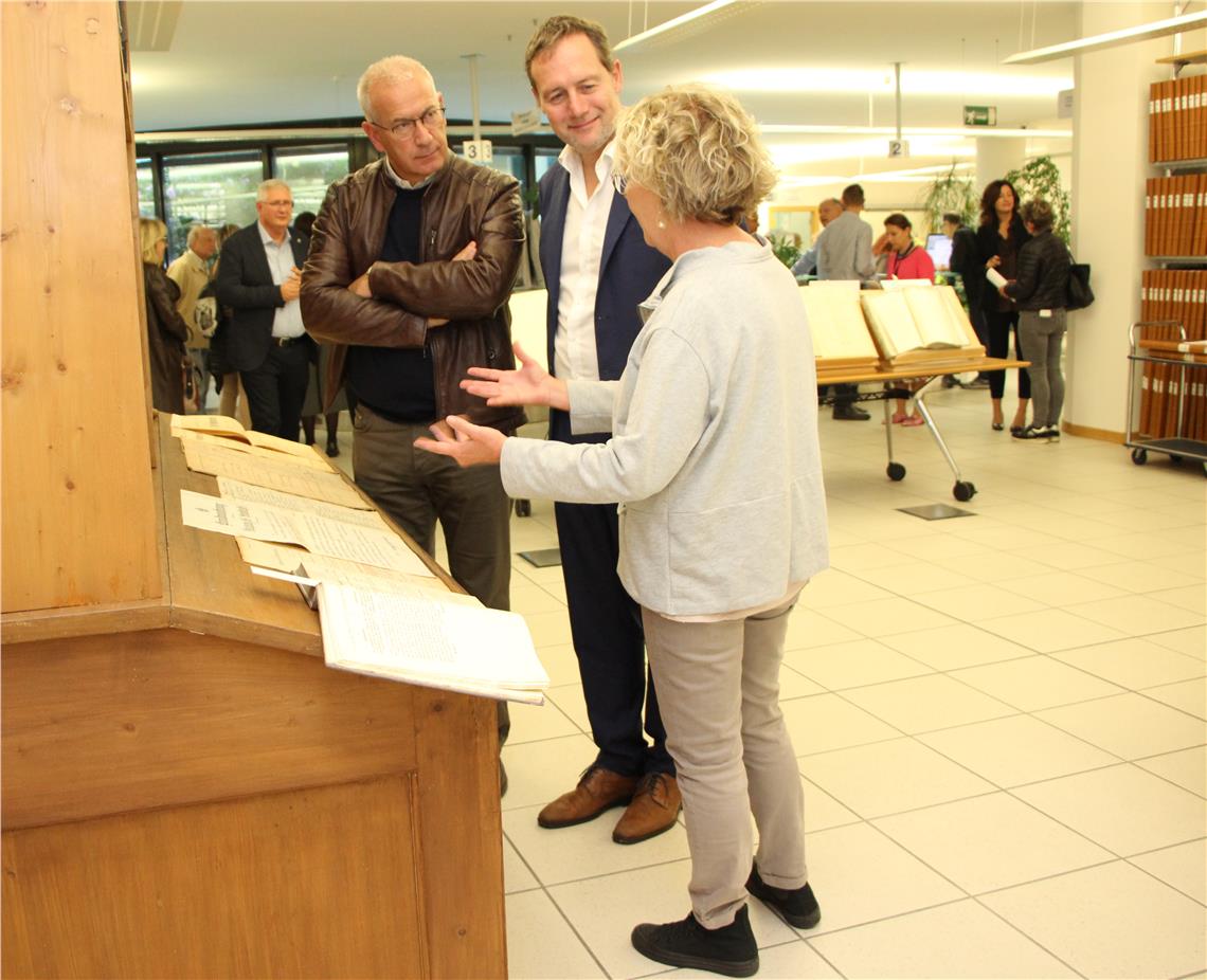Porte aperte ali uffici del Libro fondiario e del Catasto di Bolzano. L'apertura con l'assessore Bessone assieme ai funzionari (Foto: ASP/Silvana Amistadi)