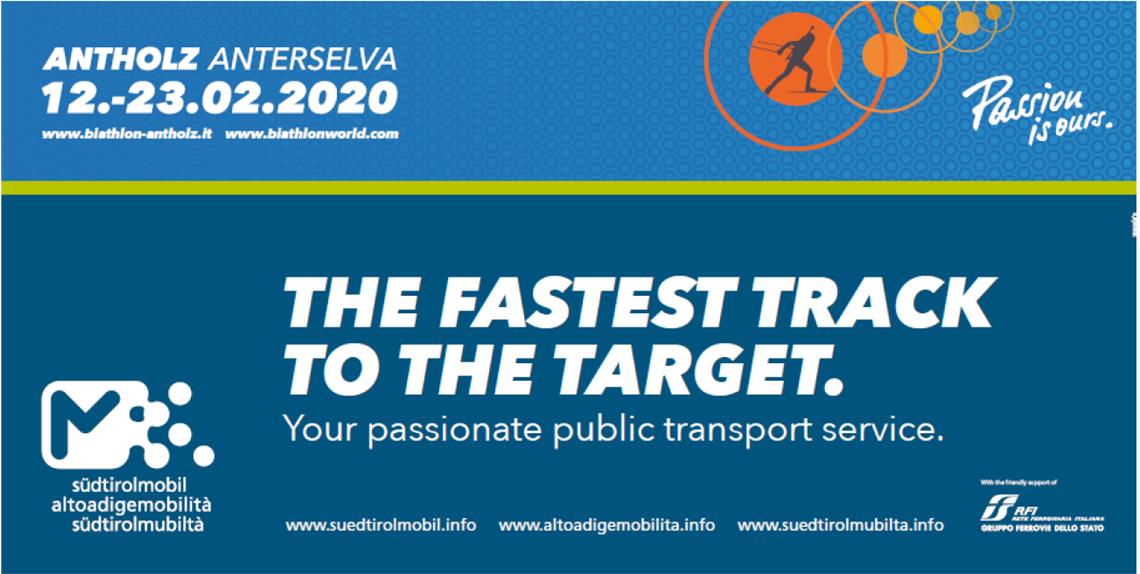 Un sistema integrato bus-treno per raggiungere in modo doppiamente vantaggioso la Südtirol Arena, location dei Mondiali di biathlon: il Comitato organizzatore della manifestazione collabora dal 2007 con altoadigemobilità per offrire un modo semplice e sostenibile di arrivare ad Anterselva. Per l'edizione 2020 della kermesse sportiva la collaborazione si rafforza ulteriormente, con treni supplementari in servizio sulla linea ferroviaria della Val Pusteria dal 12 al 23 febbraio, vale a dire per l'intera durata della manifestazione. Soprattutto nelle ore serali (dopo le premiazioni) e nei fine settimana i treni collegheranno Anterselva con il resto della Val Pusteria.