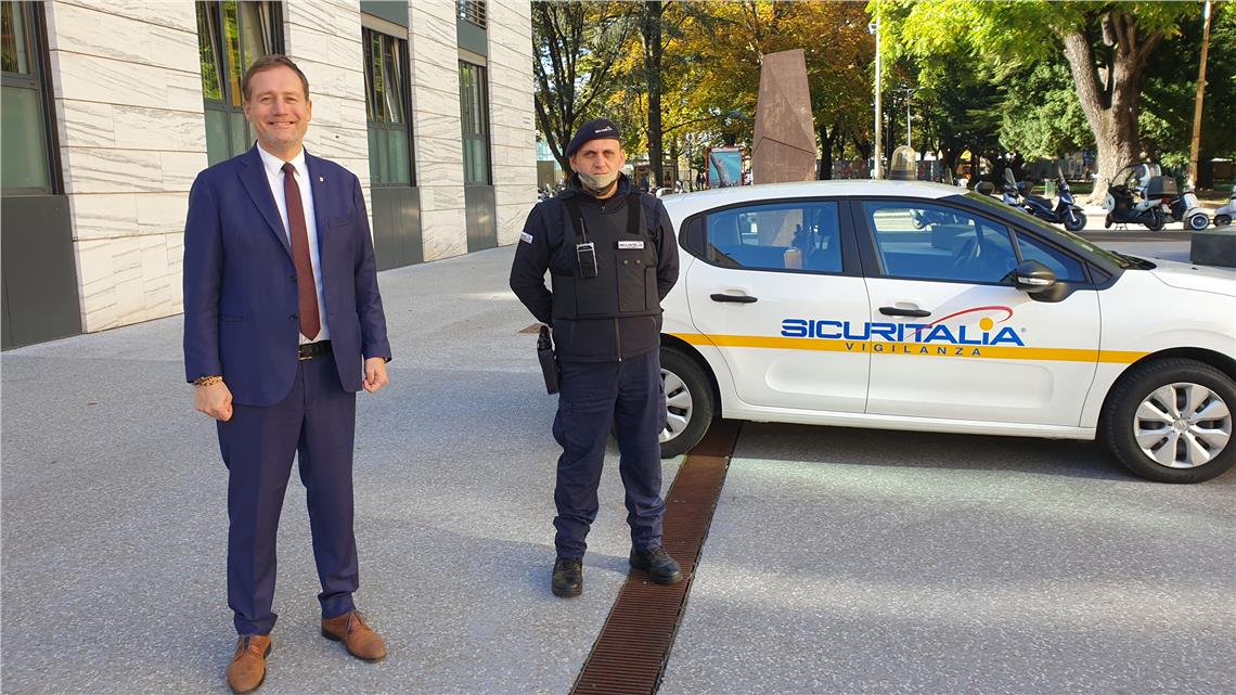 Ad un solo mese dalla sua attivazione, avvenuta l’8 settembre 2020, il servizio di vigilanza privata per piazza Silvius Magnago a Bolzano e i prospicienti palazzi provinciali, ovvero palazzo Widmann, e il palazzo II, ha già sortito gli effetti sperati: più decoro e sicurezza. "Il tema della sicurezza va ben oltre la presenza delle forze dell’ordine. L’obiettivo è quello di ripristinare la legalità e recuperare parti della città interessate da situazioni critiche, utilizzando le piazze per iniziative ed eventi pubblici, al fine di consentire ai cittadini di riappropriarsene", spiega il presidente della Provincia Arno Kompatscher. "Sono molto soddisfatto, perché nonostante le forze dell’ordine svolgano il loro lavoro in modo egregio, la misura adottata ha fatto si che la precedente situazione di degrado sia sensibilmente migliorata", afferma l’assessore provinciale all’edilizia pubblica e patrimonio, Massimo Bessone. "Lo abbiamo fatto per la sicurezza delle donne, ma anche degli uomini - aggiunge - che quotidianamente si recano al lavorano nei palazzi provinciali e per la sicurezza dei cittadini che, grazie al servizio, che ora si sentono più sicuri".