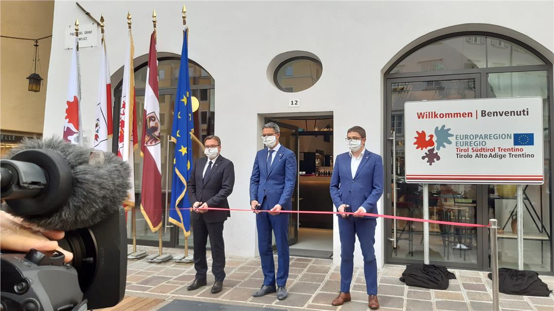 I tre presidenti di Tirolo, Alto Adige e Trentino hanno inaugurato oggi (9 ottobre) ufficialmente la nuova sede dell’Ufficio comune dell'Euregio nella Casa della Pesa, in via Portici 19/A, a Bolzano.