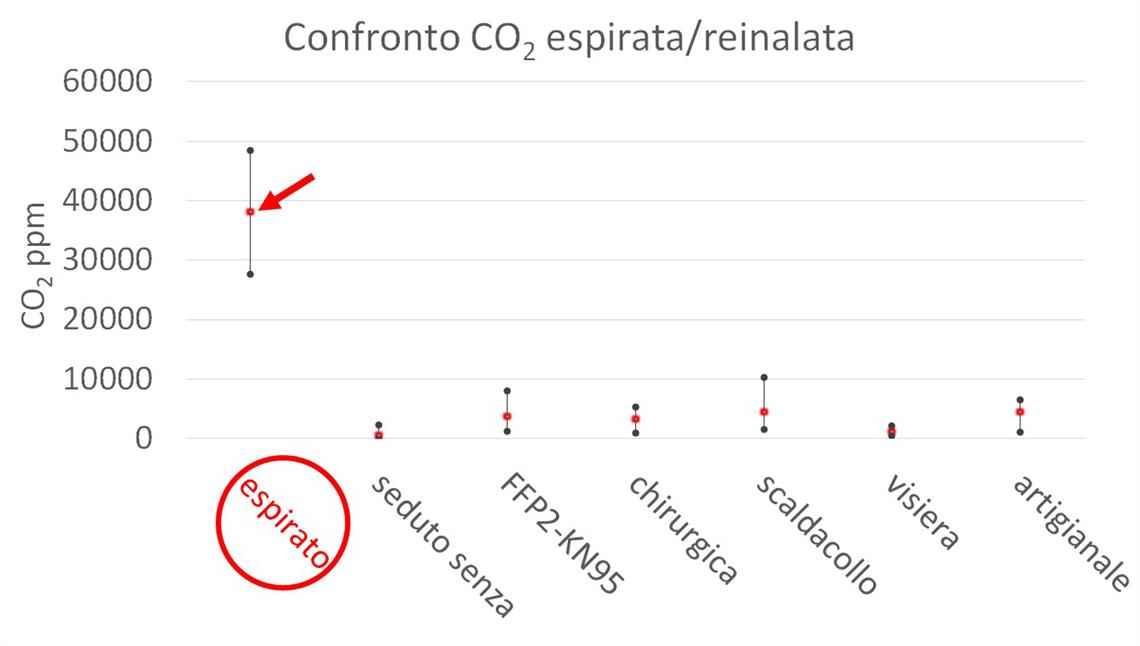 Lo studio è stato realizzato dal Laboratorio analisi aria e radioprotezione dell’Agenzia provinciale per l’ambiente e la tutela del clima. Nell’ambito delle analisi è stata quantificata la percentuale di CO2 re-inalata rispetto a quella espirata. A tal fine sono state prese in esame diverse tipologie di dispositivi di copertura naso-bocca: mascherina artigianale, mascherina chirurgica, FFP2 o KN95, visiera e fasce di stoffa. "L’aria che espiriamo - afferma Luca Verdi, direttore del Laboratorio Analisi e radioprotezione - contiene un’elevata concentrazione di anidride carbonica, circa 40.000 ppm, ovvero il 4%. Dallo studio è emerso che indossando un dispositivo di copertura naso-bocca si ha comunque un notevole ricambio d’aria che porta ad una consistente riduzione della concentrazione di CO2. Più precisamente la percentuale di anidride carbonica espirata che viene re-inalata varia da un minimo del 3% con la visiera, a un massimo del 14% con la  mascherina artigianale".
