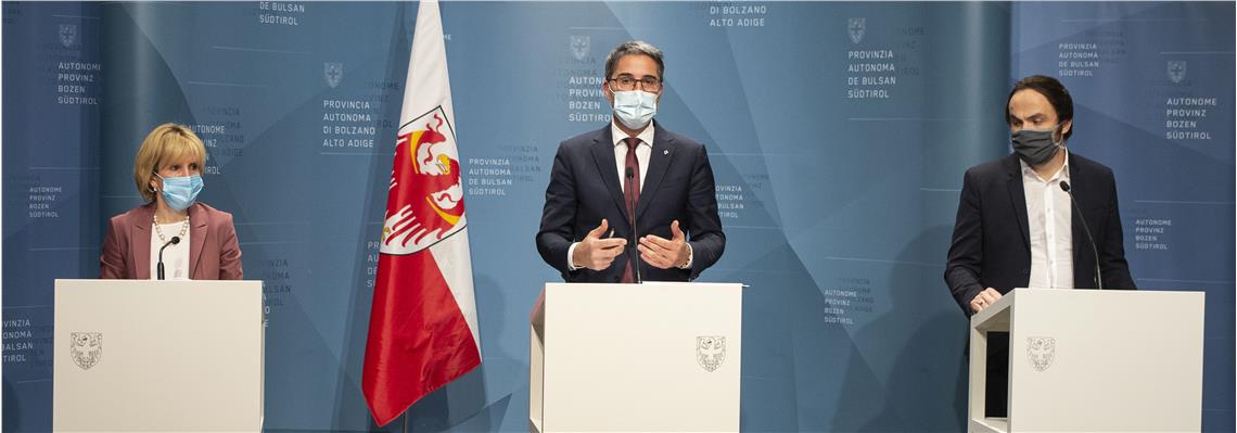 In primavera, alla fine del primo lockdown dovuto all’emergenza Coronavirus, la Giunta ha lanciato un pacchetto di misure denominato #AltoAdigesiriparte a sostegno dei cittadini, delle famiglie e delle aziende colpite dalla crisi. Oggi (4 dicembre) il presidente Arno Kompatscher, la vicepresidente Waltraud Deeg e l'assessore Philipp Achammer hanno fatto il punto sugli interventi attuati in primavera ed estate e su quelli che stanno per arrivare. In apertura di conferenza stampa il presidente ha anche riferito di aver ricevuto poco prima una telefonata dal ministro della salute Roberto Speranza che gli ha confermato il passaggio dell'Alto Adige dalla cosiddetta zona rossa alla zona arancione. Il Landeshauptmann ha quindi spiegato che al momento restano in vigore le misure previste dalla sua ultima ordinanza contingibile e urgente, la numero 73 (allegata a questo comunicato).