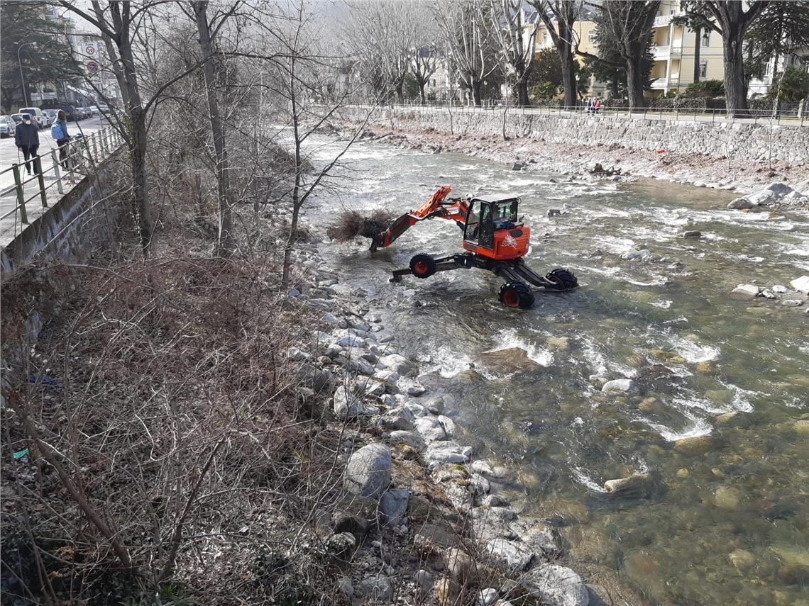 Altre squadre di addetti sono al lavoro su vari rii nell’area di Merano-Burgraviato. In particolare, stanno svolgendo interventi manutentivi e di sfoltimento della vegetazione lungo il rio San Pietro e il rio Quarazze. Sul rio di Mels, al confine comunale fra Plaus e Lagundo, sono impegnati nelle operazioni di sgombero del materiale alluvionale dai due bacini di contenimento e nell’area della confluenza con altri rii nei comuni di Parcines e Naturno, dove in seguito al maltempo di dicembre era stato convogliata un grande volume di materiale.