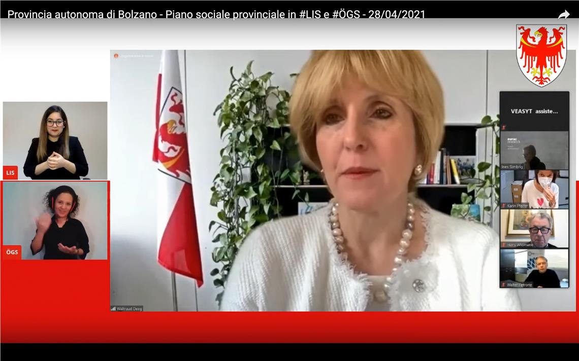 La Ripartizione politiche sociali sta elaborando, nell’ambito di un processo partecipativo, i contenuti del nuovo piano sociale provinciale. Oggi (28 aprile) si è svolto il quinto ed ultimo seminario online con gruppi di interesse ed operatori dei servizi pubblici e privati. Per l’assessora alle politiche sociali, Waltraud Deeg, è importante integrare nel nuovo piano sociale le esperienze fatte sinora. "Le condizioni quadro - afferma Deeg - erano difficili, ma abbiamo constatato che l'ampia rete sociale di organizzazioni pubbliche e private è riuscita a coinvolgere molti partner. Portiamo questa conoscenza e le esperienze che abbiamo maturato nel workshop per discutere la strada da intraprendere in futuro e continuare a lavorare in rete".