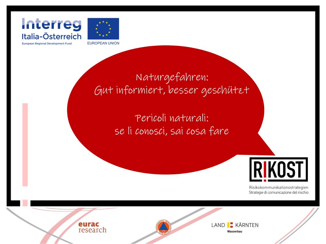 L’Agenzia provinciale per la Protezione civile, che è lead partner del progetto Interreg RiKoST, da parte sua, sta predisponendo una piattaforma web dove saranno reperibili, sia dagli esperti che dai cittadini, dati e informazioni sui pericoli naturali in Alto Adige.