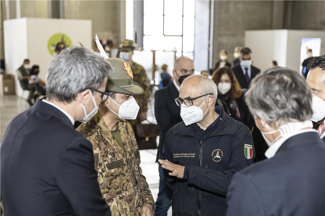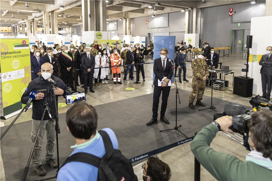 Durante il sopralluogo al centro vaccinale di Bolzano il commissario straordinario Francesco Paolo Figliuolo e il capo della Protezione civile nazionale Fabrizio Curcio sono stati introdotti dal presidente della Provincia Arno Kompatscher, che ha ricordato: "Vaccinarsi è un atto di solidarietà". Kompatscher ha poi aggiunto: "In Alto Adige abbiamo avviato da tempo un'offensiva fatta di test su ampia scala che, in parallelo con l'ampia campagna vaccinale, ci ha consentito di avviare il progetto del Corona-Pass". Secondo il presidente della Provincia "testare, vaccinare e usare il Corona-Pass sono gli strumenti fondamentali della strategia dell'Alto Adige per vincere la pandemia". Proprio sul Corona-Pass Kompatscher si è detto soddisfatto che anche a livello italiano si voglia perseguire la medesima strategia per ripristinare la possibilità di viaggiare ma anche, come preannunciato dal ministro alla Salute Roberto Speranza, anche per altri utilizzi. Per ripristinare la libertà di circolazione in Europa servirà comunque un pass digitale riconosciuto da tutti gli Stati dell'Unione e regole condivise, ha ricordato Kompatscher.