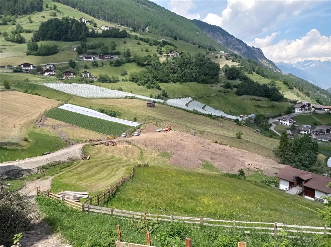 Il caposquadra Hansjörg Stricker insieme ai tecnici sta costruendo una diga di terra lunga 170 metri con un’altezza totale di circa 10 metri, che sarà rinforzata nella zona di distacco della valanga con muratura in pietre ciclopiche. Le pietre saranno prese sopra la strada statale nei pressi della valanga Durrenplatt, dove l’anno prossimo sarà costruita una nuova diga con l’obiettivo di fornire protezione alla strada statale per Martello di Dentro. La costruzione dell'argine di terra avverrà secondo le regole della geotecnica ingegneristica, spiega Fabio De Polo, direttore dell’Ufficio sistemazione bacini montani Sud. In totale, l’investimento del progetto ammonta a 600.000 euro