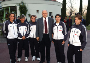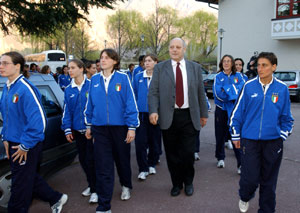 Nel dare il benvenuto alle azzurre e alle tedesche Durnwalder ha tracciato un quadro della realtà locale e ha ricordato la posizione storica dell'Alto Adige quale ponte di incontro tra il mondo di lingua italiana e quello tedesco, "che si uniscono oggi in una nuova Europa", ha detto il Presidente. Durnwalder si è complimentato con le due squadre per i rispettivi successi, "perchè le vostre nazionali rappresentano un bel biglietto da visita per i rispettivi Paesi." Alla serata erano presenti tra gli altri, oltre ai dirigenti delle due Federazioni, l'assessore provinciale Werner Frick e il vicesindaco di Bolzano Elmar Pichler Rolle.