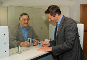 L'assessore Widmann alle prese con il nuovo servizioAll’Assessorato provinciale ai Trasporti da qualche giorno è stato attivato agli sportelli dell’Ufficio Motorizzazione e a quelli dell'Ufficio Patenti e abilitazioni alla guida, in via Crispi 10 a Bolzano, un innovativo sistema di riscossione: consente infatti all’utenza di usare contanti, pos-bancomat o carta di credito senza dover compilare bollettini di conto corrente postale e riducendo così sensibilmente i tempi di attesa agli sportelli. Attualmente il 32% dei cittadini paga in contanti mentre il 68% sceglie la carta. "È importante riuscire ad abbattere quanto più possibile la burocrazia e a semplificare e velocizzare il rapporto dell'utenza con l'amministrazione" spiega l'assessore provinciale Thomas Widmann, che ha contatato direttamente il buon funzionamento della nuova procedura d’incasso, legata all’utilizzo di un nuovo software.