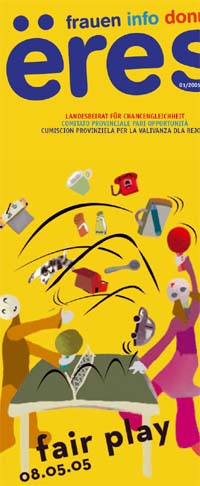 Da 10 a 16 pagine, da 12.000 a 15.000 copie, da 4 a 6 volte l’anno. Sono i numeri del nuovo ëres, il bollettino del Comitato provinciale Pari opportunità il cui nuovo numero, appena uscito, appare con un formato diverso. Le misure sono le stesse, ma ora le 16 pagine sono rilegate in formato rivista, e non più pieghevoli come prima. Anche la veste grafica è diversa, rubriche ed interventi appaiono più chiari e leggeri. Tuttavia lo stile è quello di sempre, graffiante, propositivo e critico verso tutto ciò che si oppone all’autorealizzazione delle donne. Il tutto in una proposta trilingue, come dimostrano già in seconda pagina gli editoriali di Julia Unterberger, Alessandra Spada e Ingrid Runggaldier, presidente, vicepresidente e rappresentante ladina del Comitato..