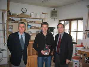 Frick e Pardeller, direttore dell'Ufficio Artigianato, hanno visitato ieri la falegnameria di Vigl, facendosi spiegare dal falegname come funziona il sistema modulare di mobili in legno massiccio da lui inventato, l'"Online-Baukasten". Il giovane artigiano ha studiato autonomamente elementi di programmazione, sviluppando il progetto brevettato con il marchio "Combox®". Grazie a questa iniziativa, i suoi clienti possono creare tramite Internet la combinazione di mobili desiderata, ottenendo informazioni sul prezzo dei modelli ed ordinando automaticamente il mobile. Anche il pagamento avviene via Internet. Inq uesto modo, Vigl raggiunge potenziali acquirenti in tutta Europa.