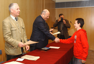 Landeshauptmann Luis Durnwalder überreicht den Fischerschein. Foto: LPA/Pertl.