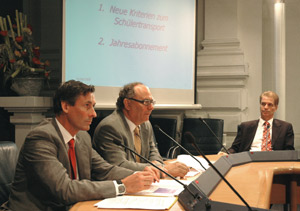 LPA - Mit dem neuen Schuljahr können Südtirols Schüler und Studenten preisgünstig und bequem alle öffentlichen Verkehrsmittel verwenden. Das neu eingeführte Jahresabonnement macht’s möglich. Ziel dieser Initiative der beiden Landesräte Thomas Widmann und Otto Saurer ist es, Schüler verstärkt zur Benutzung öffentlicher Verkehrsmittel zu motivieren. Geändert hat sich aber auch einiges in Sachen Schülerbeförderung. Saurer und Widmann haben heute, 25. Mai, in Bozen das neue Jahresabonnement für Schüler aber auch die Neuheiten im Bereich der Schülerbeförderung vorgestellt.