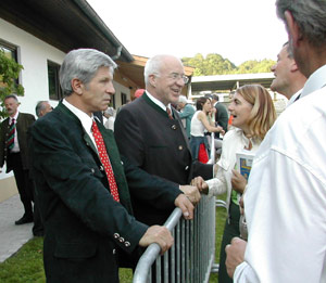 (LPA) Stark vertreten sind die Südtiroler Züchter von Haflingerpferden derzeit auf der Haflinger-Weltausstellung in Ebbs in Nordtirol. Für Landesrat Hans Berger ging es bei seinem Besuch der Ausstellung vor allem darum, Wege zur Beilegung der Differenzen zwischen Nord- und Südtiroler Züchtern zu erörtern. Und er hat dabei einen wichtigen Verbündeten gefunden: Landeshauptmann Herwig van Staa.