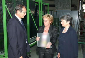 LPA - Einen vorbildlichen Betrieb, der von einer Frau geführt wird, haben sich Innovationslandesrätin Luisa Gnecchi und Industrielandesrat Werner Frick heute, 27. Mai, in Bozen angeschaut. Christine Müller, die Inhaberin des Glashandels- und Glasverarbeitungsunternehmens „Glas Müller“ hat vom Land im Rahmen des Wettbewerbs „Frauen in der Wirtschaft“ einen Preis bekommen. Beide Landesräte betonten, wie wichtig, Innovationen auch für mittlere Betriebe sind und dass möglichst viele Frauen diesem Beispiel folgen sollten.