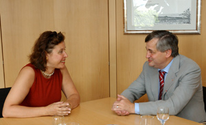 LPA - Die österreichische Generalkonsulin in Mailand, Eva Maria Ziegler, hat am gestrigen Montag, 4. Juli 2005, in Bozen Landesrat Florian Mussner einen Besuch abgestattet. Unterhalten haben sich die beiden über die derzeitige Situation der Ladiner, die ladinische Kultur und den Kulturaustausch mit Österreich.
