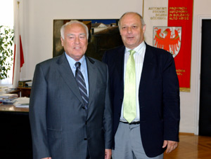 (LPA) Mit Viktor Tschernomyrdin konnte Landeshauptmann Luis Durnwalder heute (15. Juli) einen ehemaligen russischen Ministerpräsidenten in seinem Büro im Palais Widmann begrüßen. Der derzeitig Sonderbotschafter in der Ukraine hat sich vor allem über Wirtschaft und Autonomie in Südtirol informiert. "Wir sehen durchaus Bereiche, in denen die Zusammenarbeit zwischen Russland und Südtirol intensiviert werden kann", so Durnwalder nach dem Treffen.